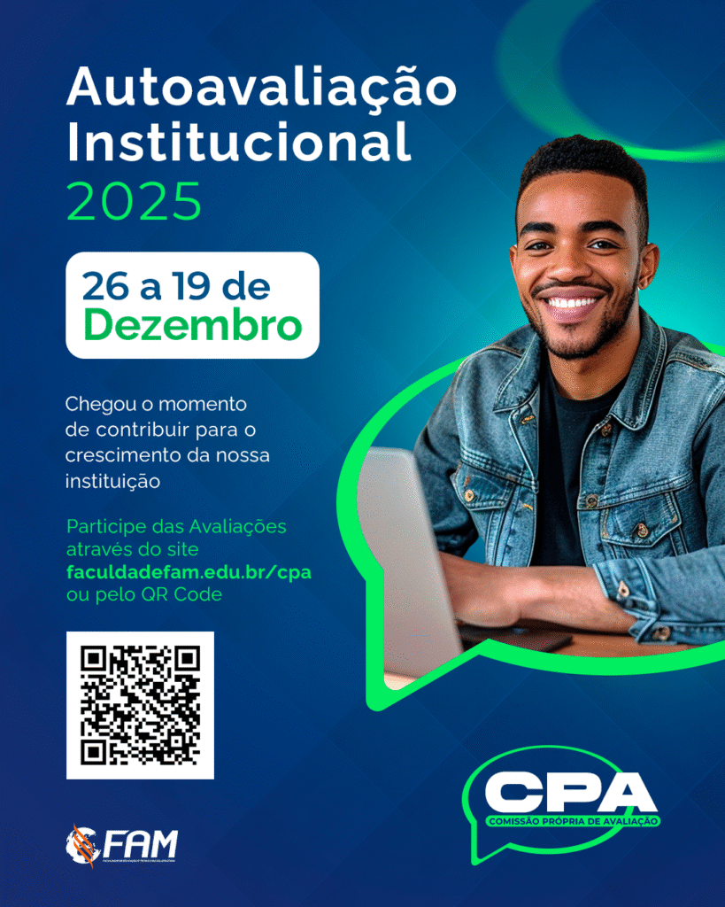A ação é promovida pela Comissão Própria de Avaliação (CPA) da FAM, órgão responsável por conduzir as avaliações internas da instituição e acompanhar continuamente a qualidade do ensino superior ofertado.