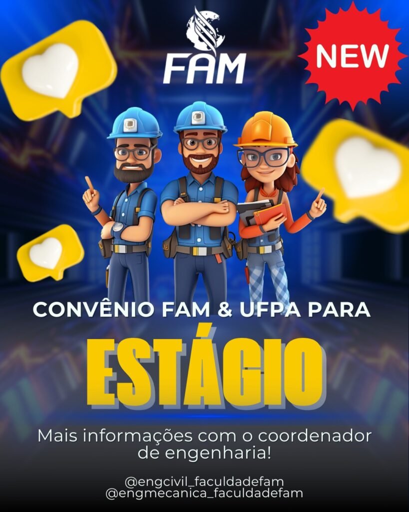 A Coordenação dos Cursos de Bacharelado em Engenharia Civil e Bacharelado em Engenharia Mecânica da Faculdade de Educação e Tecnologia da Amazônia – FAM, vem por meio do seu Coordenador o Prof. Doutorando Glauber Moraes Silva, informar sobre a parceria de estágio FAM – UFPA, onde com a parceria é dada a oportunidade ao aluno […]