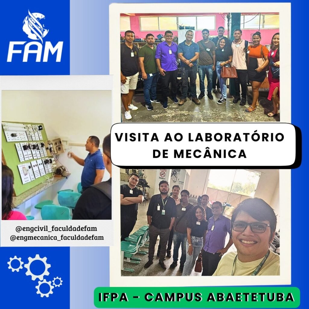 No dia 27 de setembro de 2024, no horário de 14 às 18 horas, ocorreu a visita técnica dos discentes dos Cursos de Bacharelado em Engenharia Civil e Bacharelado em Engenharia Mecânica da FAM nos laboratórios de física e química da Universidade Federal do Pará (UFPA) – Campus Abaetetuba, tendo ampla adesão e participação dos […]