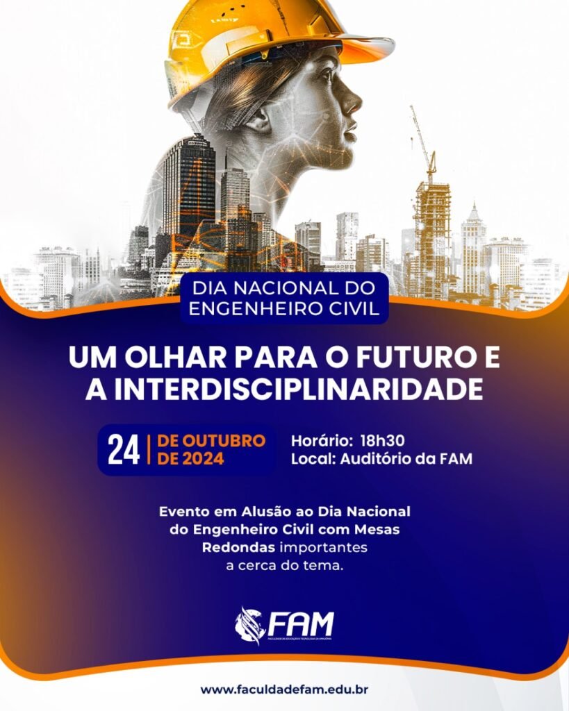 A Coordenação dos Cursos de Bacharelado em Engenharia Civil e Bacharelado em Engenharia Mecânica da Faculdade de Educação e Tecnologia da Amazônia – FAM, vem por meio do seu Coordenador o Prof. Doutorando Glauber Moraes Silva, convidar a comunidade acadêmica da FAM a prestigiar a palestra intitulada de “Conscientização e Comportamento Seguro: Promovendo uma Cultura […]