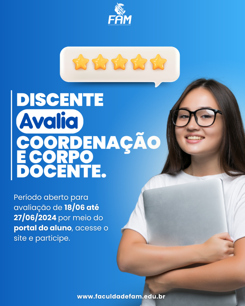 A Faculdade FAM convida toda a comunidade acadêmica a fazer parte do nosso processo de autoavaliação institucional promovido pela Comissão Própria de Avaliação (CPA). Esse é um momento importante, onde sua opinião faz a diferença para que possamos aprimorar nossos serviços e oferecer uma experiência educacional cada vez melhor. Através da autoavaliação, você pode avaliar […]