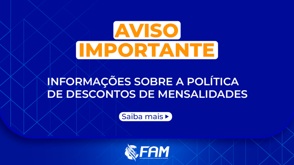 COMUNICADO Abaetetuba, PA, 10 de outubro de2024. A Direção Mantenedora da Faculdade de Educação e Tecnologia da Amazónia-FAM, com o intuito de atualizar e melhor adequar sua política de descontos de mensalidades, comunica aos seus alunos pagantes a comparecer no setor financeiro da lES, para atualização cadastral (Recadastramento ), objetivando manter sua vida financeira em […]