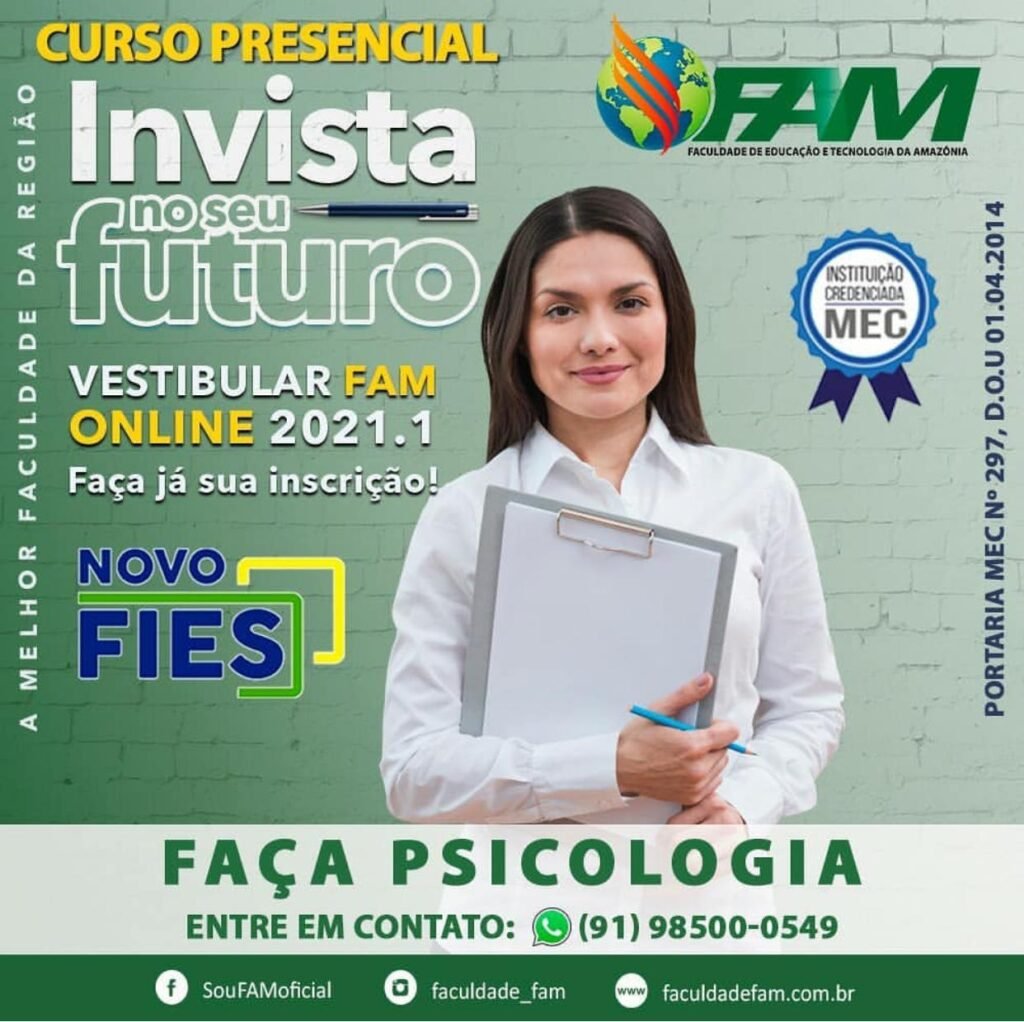 O Curso de Psicologia da FAM foi autorizado pelo Ministério da Educação através da Portaria n° 221, e 08 de junho de 2020 e é o primeiro e único ofertado no Município de Abaetetuba.